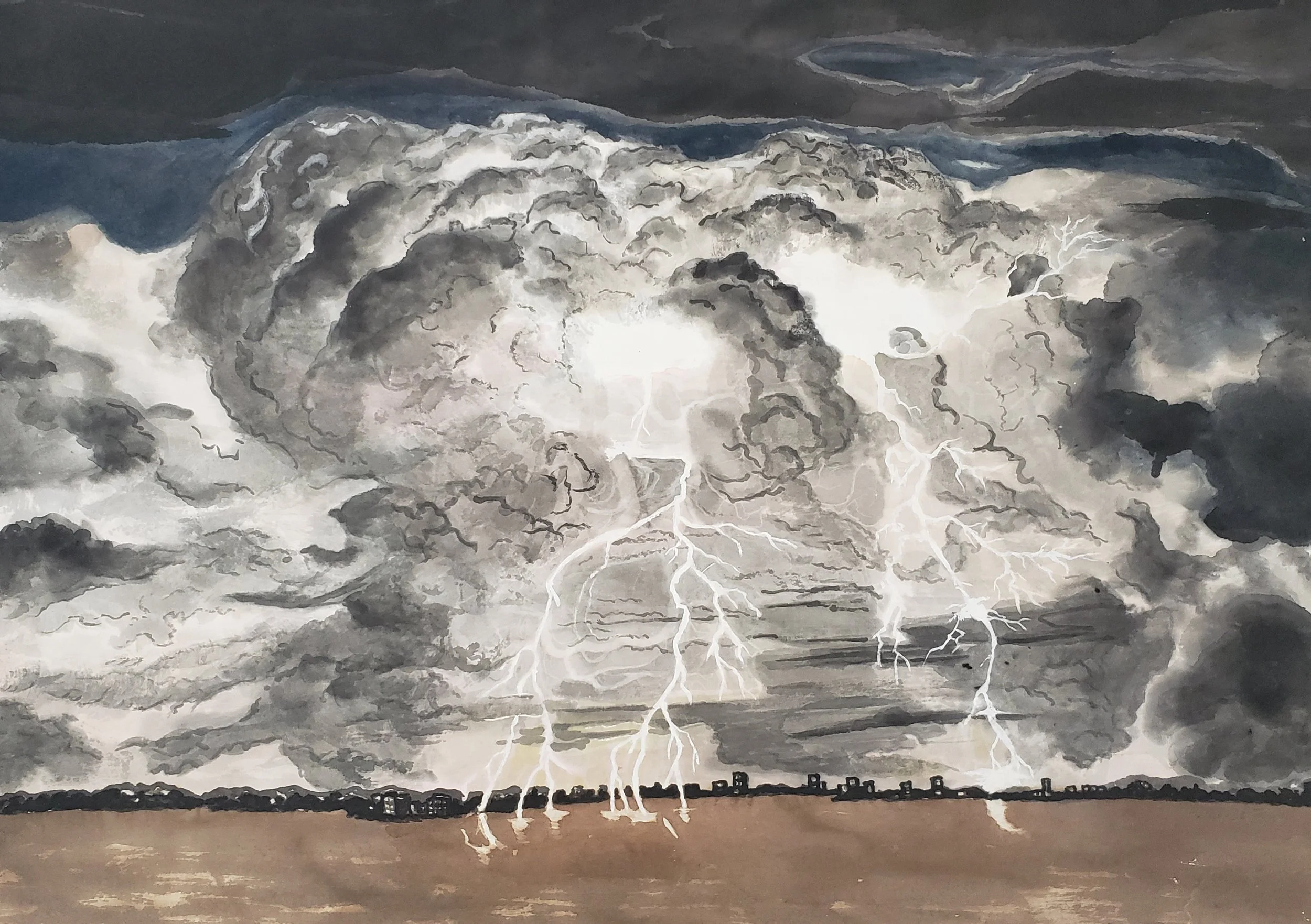 Strikes, 14"x19", Ink on Xuan paper, 2020