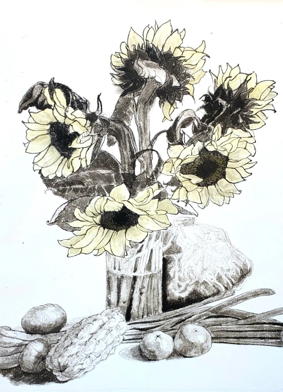 Sunflowers - Remembrance - Lustre - Nature - Old Bottles / New Clothes - Narrative - Sketches - Brush Drawing - Home